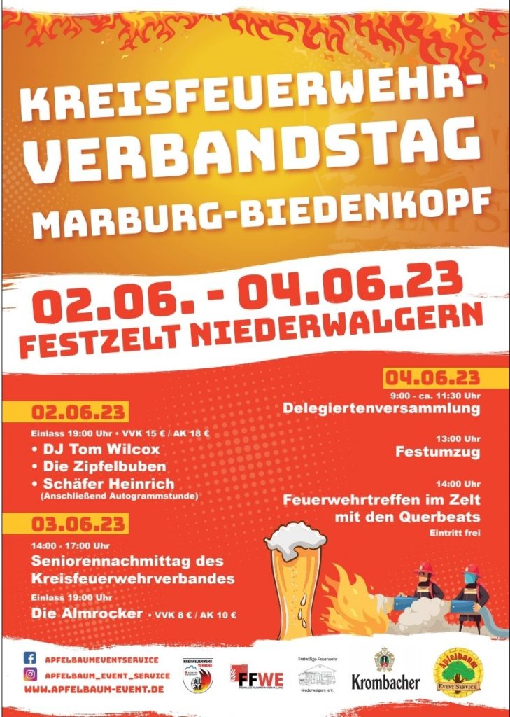 Wir freuen uns sehr, in diesem Jahr wieder Gastgeber des Kreisfeuerwehrverbandstages zu sein. Vom 2.-4. Juni rockt es im Zelt auf dem Festplatz in Niederwalgern. Allen Gästen ein herzliches Willkommen…